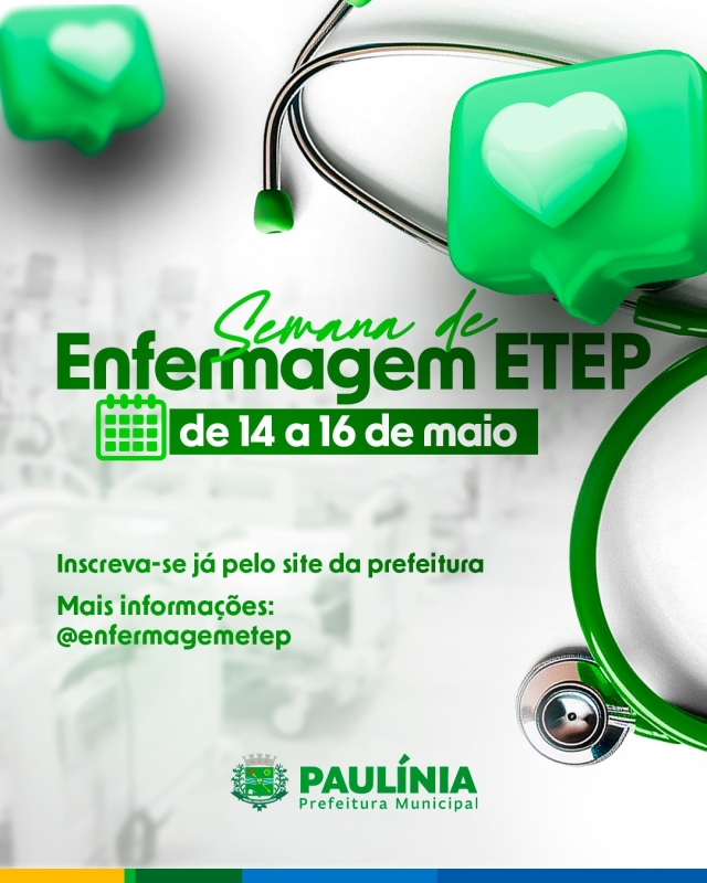 A Escola Técnica de Paulínia (ETEP) promove, nos dias 14, 15 e 16 de maio, a Semana da Enfermagem 2025. O evento será realizado na própria unidade e contará com uma programação diversificada voltada para diferentes áreas da formação técnica em enfermagem.